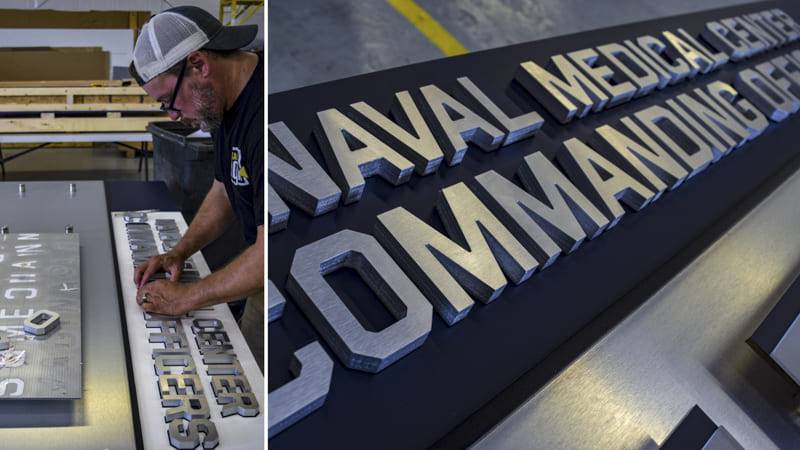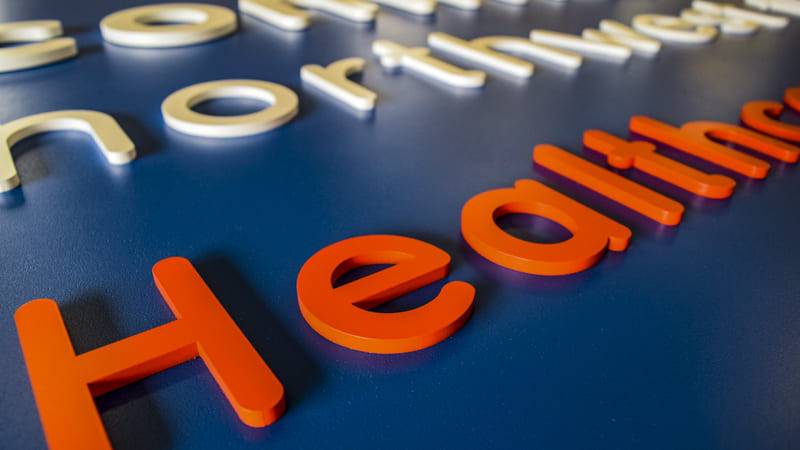 With dimensional letters, even your most simple text and logos make bold statements. We have the technology available in-house to produce lettering in a variety of materials such as plastic, metal, foam, and acrylic to perfectly represent your defined corporate identity. Accentuated with lighting behind an office reception desk or mounted to an exterior wall, our high-quality dimensional letterforms are durable and can serve both a decorative and utilitarian purpose. Our team of experienced designers utilizes dimensional letters in many of our custom displays like donor walls and employee recognition boards to add depth and visual interest to the design. We can also create custom branded dimensional wayfinding for both interior and exterior applications. Nationwide service including design, production, shipping and installation is our specialty.